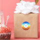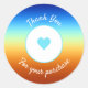 Thank You product or packaging sticker created in gradient sunrise colors with a teal blue heart in the center. The thank you text is in a curved bold script and ready for you to purchase as is, or edit with your own personalized wording.