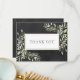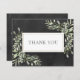 Business thank you spring leaves chalkboard card. Featuring delicate watercolour leaves framing your thank you message set in an elegant text. You can personalise with your own thank you message and name on the reverse or if you prefer to add your own handwritten message delete the text. A great way to show your appreciation to your clients and customers. Perfect for a wide range of businesses including; beauticians, beauty therapists, cosmetologists, stylists, nail salons, hair and makeup artists, retail and spas.