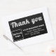 Customisable sticker with Thank You texts to appreciate the purchase or support of your customers or clients. You can also use it as marketing material to advertise your business and to promote your brand name or build brand name awareness. Designs are white texts on black background and rectangle shape. To customise this sticker, upload your business logo, type your business or company name, address and phone number. After uploading logo and typing texts, please check the appearance. If the appearance is pleasing to you, you can place your order now. If you need to resize and move the logo and texts to fit on this sticker, please change in the design tool. You can also make other changes according to the appearance that you prefer in the design tool such as changing the background colour, font colour and font style.