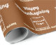 Happy Thanksgiving! Holiday to celebrate this November to thank for the blessings that we received. It is also one of the holidays to advertise your business. Customisable wrapping paper with seamless pattern of Happy Thanksgiving greeting, your business name and logo. Packaging material that you can use to build brand name awareness. Design colours are light brown and white texts on brown background. Please check the appearance after uploading logo and typing your business name. If the appearance is pleasing to you, you can place your order now. If you need to resize and move the logo and your business name to fit in the template, please change in the design tool. You can also change the background colour, font colour and font style in the design tool. Packaging material for your products to sell, promotional products, giveaway items or gifts to your customers. Wrapping paper to greet your customers or clients this Thanksgiving season, to advertise your business or to promote your brand name. Happy Thanksgiving! Wishing you more sales this holiday season.