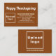 Happy Thanksgiving! Holiday to celebrate this November to thank for the blessings that we received. It is also one of the holidays to advertise your business. Enclosure card that you can customise to put your business brand and with Thanksgiving greeting. Customise it and use it to greet your customers or clients this Thanksgiving and as marketing material to advertise your business or to promote your brand name. You can also use it as accessory of packaging material of your product. Customisable enclosure card that you can use to build brand name awareness. Design colours are light brown and white texts on brown background. To customise this enclosure card, upload your business logo, type your business name, address, phone number, e-mail and website or your business social media page. Please check the appearance on front and back sides after uploading logo and typing texts. If the appearance is pleasing to you, you can place your order now. If you need to resize and move the logo and texts to fit on this enclosure card or on the size that you will choose, please change in the design tool. You can also change the background colour, font colour and font style in the design tool. Happy Thanksgiving! Wishing you more sales this holiday.