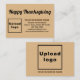 Happy Thanksgiving! Holiday to celebrate this November to thank for the blessings that we received. It is also one of the holidays to advertise your business. Enclosure card that you can customise to put your business brand and with Thanksgiving greeting. Customise it and use it to greet your customers or clients this Thanksgiving and as marketing material to advertise your business or to promote your brand name. You can also use it as accessory of packaging material of your product. Customisable enclosure card that you can use to build brand name awareness. Design colours are black and dark brown texts on light brown background. To customise this enclosure card, upload your business logo, type your business name, address, phone number, e-mail and website or your business social media page. Please check the appearance on front and back sides after uploading logo and typing texts. If the appearance is pleasing to you, you can place your order now. If you need to resize and move the logo and texts to fit on this enclosure card or on the size that you will choose, please change in the design tool. You can also change the background colour, font colour and font style in the design tool. Happy Thanksgiving! Wishing you more sales this holiday.