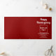 Happy Thanksgiving! Holiday to celebrate this November to thank for the blessings that we received. It is also one of the holidays to advertise your business. Trifold card with Thanksgiving greeting that you can customise to put your business name, products or services and other information of your business. Trifold card as brochure for your business. You can put up to three products or services. Customise it and use it to greet your customers or clients this Thanksgiving and as a marketing material to advertise your business and to promote your products or services. Design colours are white texts on red background. To customise this trifold card, upload your business logo and images of your products or services. Type also your business name, address, phone number, e-mail, website or your business social media page and short attractive description of your products or services. Please check the appearance on all sides after uploading images and typing texts. If the appearance is pleasing to you, you can place your order now. If you need to resize and move the images and texts to fit on this trifold card, please change in the design tool. You can also change the background colour, font colour and font style in the design tool. Advertise your business. Promote your brand name. Customisable trifold card that you can use to build brand name awareness. Happy Thanksgiving! Wishing you more sales this holiday season.