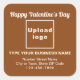 Valentine’s Day, a lovely holiday to celebrate. It is also one of the holidays of the year to advertise your business. By the way, are you looking for small marketing material that you can use to advertise your business to customers or clients this Valentine season? Please see this customisable sticker, you might like it. Designs are light brown and white texts on brown colour background and square shape. Contents are Happy Valentine’s Day greeting texts, your business logo, business or company name, address and phone number. Please check the appearance after uploading logo and typing texts. If the appearance is pleasing to you, you can place your order now. If you need to resize and move the logo and texts to fit on this sticker or on other sizes that you will choose, please change in the design tool. You can also make other changes in the design tool according to the appearance of this sticker that you prefer such as changing the background colour, font colour and font style. Customisable sticker that you can use to advertise your business, promote your brand name or build brand name awareness. You can also use it as accessory of product packaging material. Happy Valentine’s Day! Wishing you more sales this Valentine season.