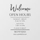 Business and Open Hours Company Window Cling Sign. Elegant Serif Fonts. Large type for easy reading. Easy to personalise for your own company needs.