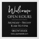 Business and Open Hours Company Window Cling Sign. Elegant Serif Fonts. Large type for easy reading. Easy to personalise for your own company needs.