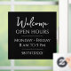 Business and Open Hours Company Window Cling Sign. Elegant Serif Fonts. Large type for easy reading. Easy to personalise for your own company needs.