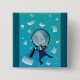 Businessman Giant Magnifying Glass Flying Papers 15 Cm Square Badge