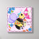 Enjoy this fun and whimsy "Busy Bee" art canvas to generate some smiles. This colourful and whimsy yellow and black honey bee has purple lavender wings with green stars, is wearing a turquoise hat with a fuchsia pink flower, a fuchsia pink bead necklace and has an orange scarf with turquoise flowers around her waist. She is holding a light green "nectar" bucket and is smelling fuchsia pink trumpet flowers. She has big eyes and a whimsy expression and smile. This cute shirt is delightful for bee lovers. The words "Busy Bee" are customisable and can be changed to personalise with your name, monogram, business name, or other words of your choice or deleted. Busy Bee is original art and is one of 12 bees by fabric designer and artist Phyllis Dobbs and is part of her fabric collection "Bee Yourself" from Quilting Treasures. All the bees are here on various products from tech products (phone cases, greeting cards, home products, business cards and many more). Phyllis can also customise her "Bee Yourself" bees for your needs. COLORS: yellow, black, fuchsia pink, green, turquoise blue, purple lavender green pink. Fully customisable to personalise.