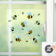 Cute hubby bumblebees buzz cheerfully about on bumbly business. Great for bee and nature lovers, this lively and cheerful window decal is perfect for kids' rooms and nurseries. Stick it on wk windows, mirrors, or any shiny surface. You can even cut out the bees for individual placement to make your own creative arrangements.