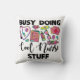 Colourful nurse design throw pillow features a stethoscope, nurse cap, hypodermic needle, glasses, bandage, and cool text that reads Busy Doing Cool Nurse Stuff! You can easily change the background colour of both the front and back of this cool nurse pillow. It's a great gift for RNs, LPNs, ER nurses, nurses aids, student nurses, and more!