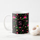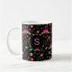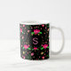 Busy Floral Pattern on Black Monogram Coffee Mug