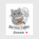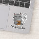 This adorable and customisable sticker features a cute, sleepy-eyed grey cat holding a steaming cup of coffee. The playful design is complemented by the phrase "But First, Coffee" printed below the cat, making it perfect for coffee enthusiasts and cat lovers alike. Personalise this sticker with your name or a special message to make it uniquely yours. Ideal for casual wear or as a thoughtful gift for friends and family who can't start their day without a cup of joe and some feline charm.