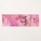 This fun and trendy yoga mat says "but first, yoga" in brush script typography and features a bright, pink watercolor look background.