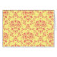 A classic, elegant damask design pattern in pastel buttery yellow and cranberry pink.