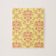 A classic, elegant damask design pattern in pastel buttery yellow and cranberry pink.