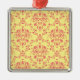 A classic, elegant damask design pattern in pastel buttery yellow and cranberry pink.