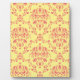 A classic, elegant damask design pattern in pastel buttery yellow and cranberry pink.