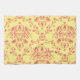 A classic, elegant damask design pattern in pastel buttery yellow and cranberry pink.