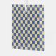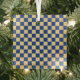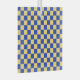 A checkerboard pattern with alternating yellow and blue squares. The repeating geometric design creates a vibrant, symmetrical visual effect.