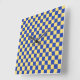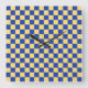 Butter yellow and blue checkered board pattern square wall clock