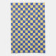 Butter yellow and blue checkered board pattern tea towel