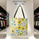 Butter Yellow and Blue Floral Tote Bag