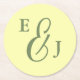 Butter Yellow and Sage Minimalist Wedding Round Paper Coaster