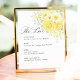 Matching items available including wedding invitations, RSVP cards, details cards, welcome signs, seating charts, menus, place cards, table numbers, and coordinated wedding signage in the same butter yellow floral collection.
