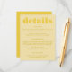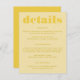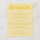 Beautiful butter yellow wedding details enclosure cards featuring bold, modern font pairings and shades of yellow. The back pops with a bright yellow to coordinate with the text on the front. The butter yellow will bring radiant warmth to your day. Perfect for couples seeking a blend of cheerful energy and refined elegance.
