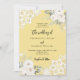 For an elegant and romantic wedding. A buttercream yellow coloured background decorated with white florals, roses and white lace. Personalise and add your names and details.