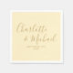 Elegant buttercup yellow signature wedding napkins featuring signature style names, these modern napkins can be personalised with your information in chic gold lettering. Designed by Thisisnotme©