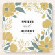 A yellow colour palette sets this wedding coaster apart from the rest. The design features a modern floral bouquet, and you may customise all of the text. Coordinating items available.