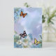 Blue hues with soft vintage blue, white and pink flowers, adorned with vibrant butterflies. Add your own message to personalise.