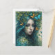 A woman with flowing blue hair is surrounded by butterflies and leaves, creating a mystical and ethereal atmosphere. Her serene expression and the vibrant colours convey a sense of harmony with nature.