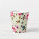 It has a light yellow background with butterflies and pink flowers and roses.