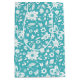 White floral pattern with butterflies on a turquoise background.