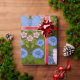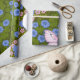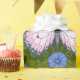 Butterflies and flowers symmetry, blue and pink wrapping paper