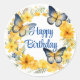 Butterflies and Golden Flowers Birthday Classic Round Sticker