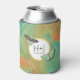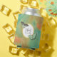 Vibrant southwest colours of turquoise, teal, orange and matching earth tones form the backdrop for this custom can cooler design. Vintage butterflies in matching colours flutter over a gold-trimmed circular frame containing your monogram or other desired text. Shown here with a wedding theme including the bride and groom's initials and wedding date.
