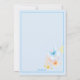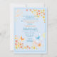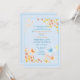 A modern invitation with a blue background featuring abstract daisies and butterflies. This versatile design can be used not only for baby showers but birthdays too.