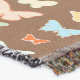 An array of butterflies in shades of turquoise, aqua, coral orange, gold and rust on a chocolate brown background