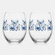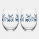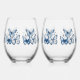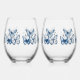 Butterflies in Delft Blue, customisable Stemless Wine Glass