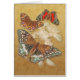 Pretty gold background with floral pattern and trio of butterflies hovering above flowers. Customise inside text.