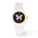 Watch: Cute fashion watch with pink Butterflies and easily customised name, message for girls. Fashionable, Cool, stylish design for Children to learn time. Text, name and numbers are easily adjusted in the template. Original Photography/Art/Design by work4dream.
