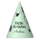 Butterflies on Green Flowers Birthday w/ Name Party Hat
