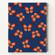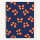 This pretty notebook is embellished on both sides with a pattern of flying butterflies in hues of pink and orange with black bodies. The dark blue background colour is easy to customise.