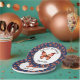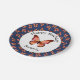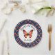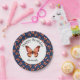 This personalised birthday party paper plate is embellished with pretty graphic butterflies in shades of orange, pink and black.
