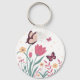 Butterflies with Pink Tulips and Yellow Daisies Key Ring