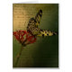 Butterfly on a flower with a vintage handwriting layer added in a digital editing program